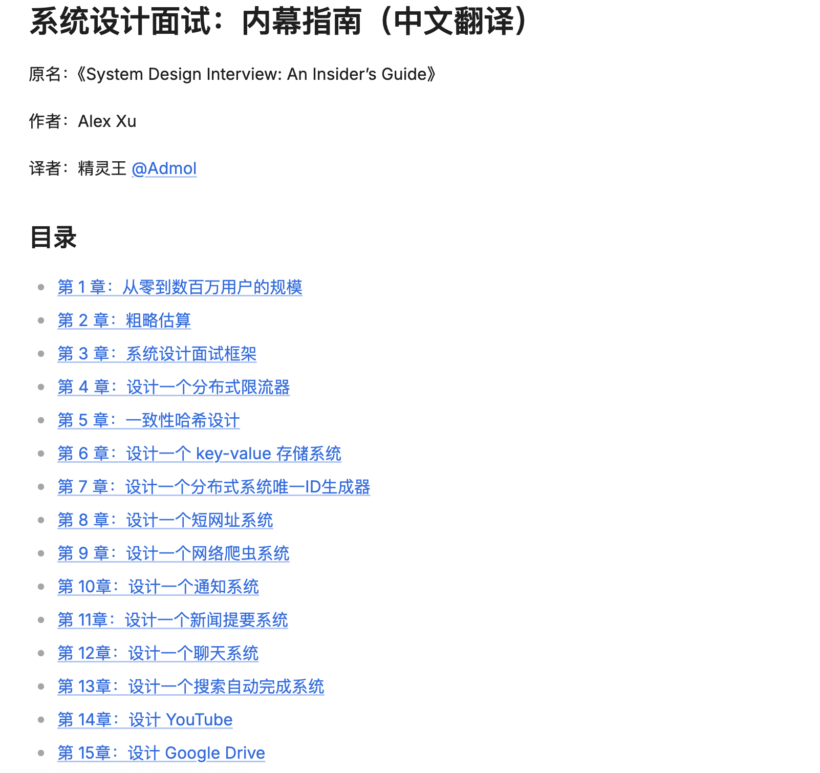 《系统设计面试:内幕指南》(System Design Interview: An Insider’s Guide)的中文翻译版本。