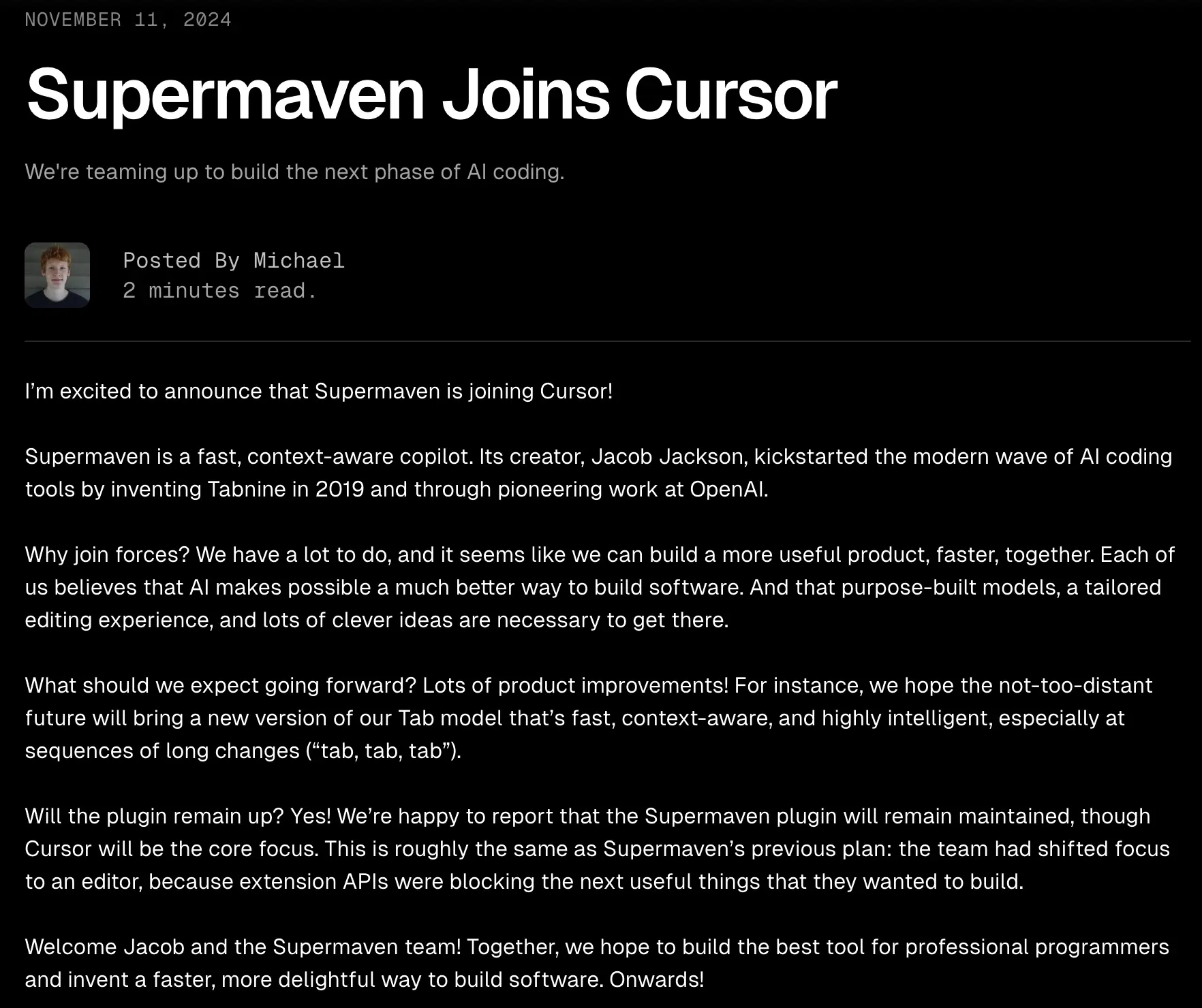 Cursor 母公司 Anysphere 收购 AI 编码助手 Supermaven