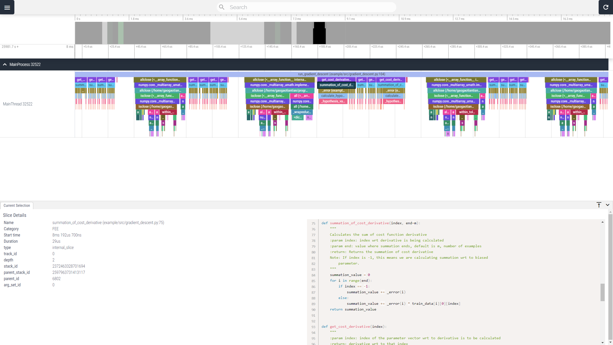 VizTracer是一个低开销的Python代码执行跟踪和可视化工具,支持详细的函数进出信息、线程、多进程、子进程、异步和PyTorch。它使用Perfetto作为前端UI,易于使用,无需更改源代码,支持Linux/MacOS/Windows,并可通过pip安装。