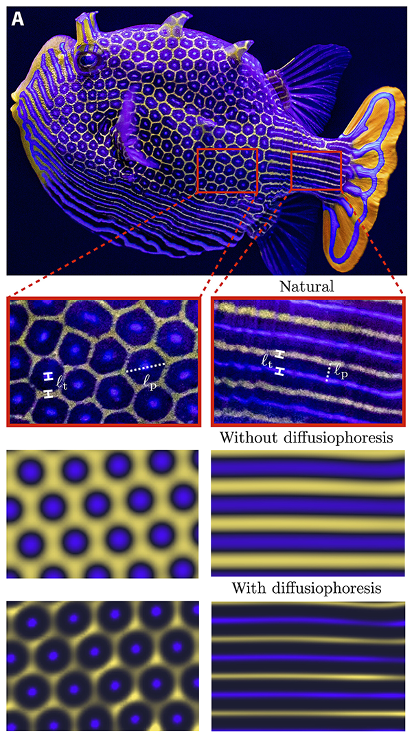 艾伦·图灵在七十多年前提出了一种机制,解释了动物如何从均匀性中发展出各种图案。动物的斑纹多种多样,如条纹、斑点、菱形等,这些图案不仅美丽,也启发了科学家对动物斑纹的研究。图灵模式(Turing pattern)是其理论的核心,涉及两种关键物质:激活剂和抑制剂,它们在组织中以不同速度扩散,产生稳定的图案。然而,仅靠图灵的理论有时不足以解释自然中的复杂图案,科学家还需考虑细胞作用、额外的输送技巧等。例如,斑马鱼的条纹形成涉及色素细胞间的复杂相互作用,而箱鲀的六边形图案可能涉及扩散电泳现象。此外,一些动物如棕色安乐蜥和非洲条纹鼠的图案形成还涉及遗传学机制。科学家们继续探索图灵模式及其与其他因素结合的复杂性,以更深入地理解动物图案的逻辑。