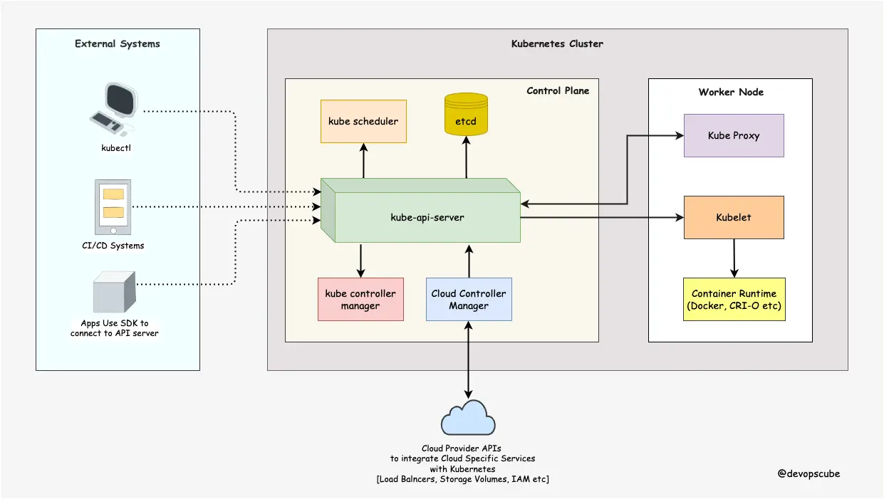 kube-apiserver是Kubernetes集群的中心枢纽,处理所有API请求并与其他组件通信。etcd是一个强一致性分布式键值存储,存储集群的所有配置和状态。kube-scheduler负责在工作节点上调度Pod,使用过滤和评分机制选择最佳节点。kube-controller-manager管理所有Kubernetes控制器,确保资源处于期望状态。cloud-controller-manager则作为云平台API和Kubernetes集群之间的桥梁,管理云特定资源。