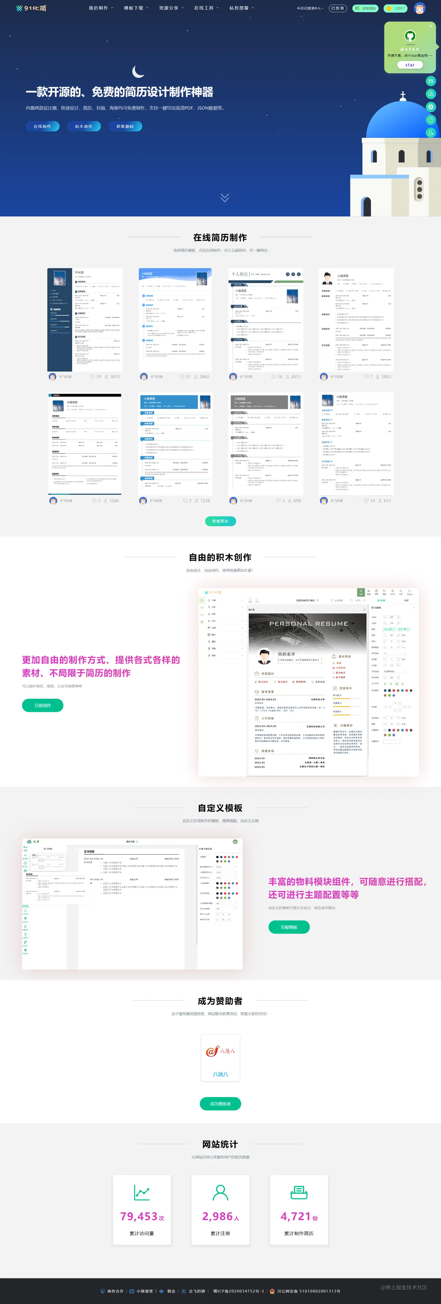 猫步简历是一个开源免费的简历设计制作平台,提供多种免费模板,支持自定义模板和主题,可导出PDF和JSON数据。
