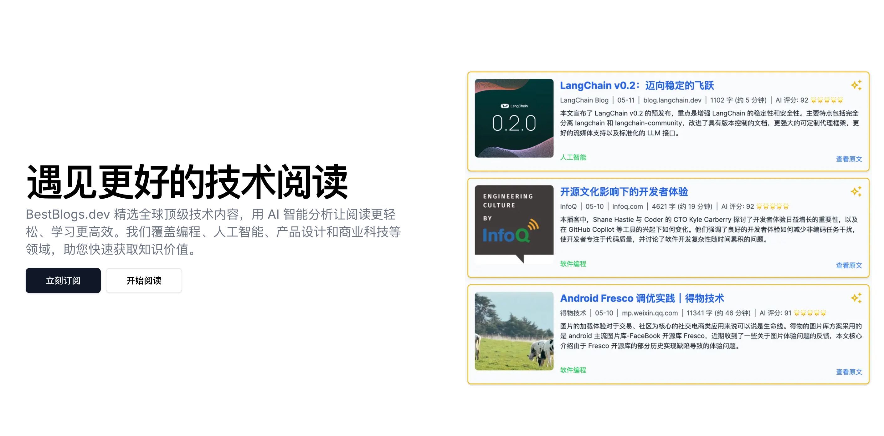 汇集顶级编程、人工智能、产品、科技文章,大语言模型摘要评分辅助阅读,探索编程和技术未来。