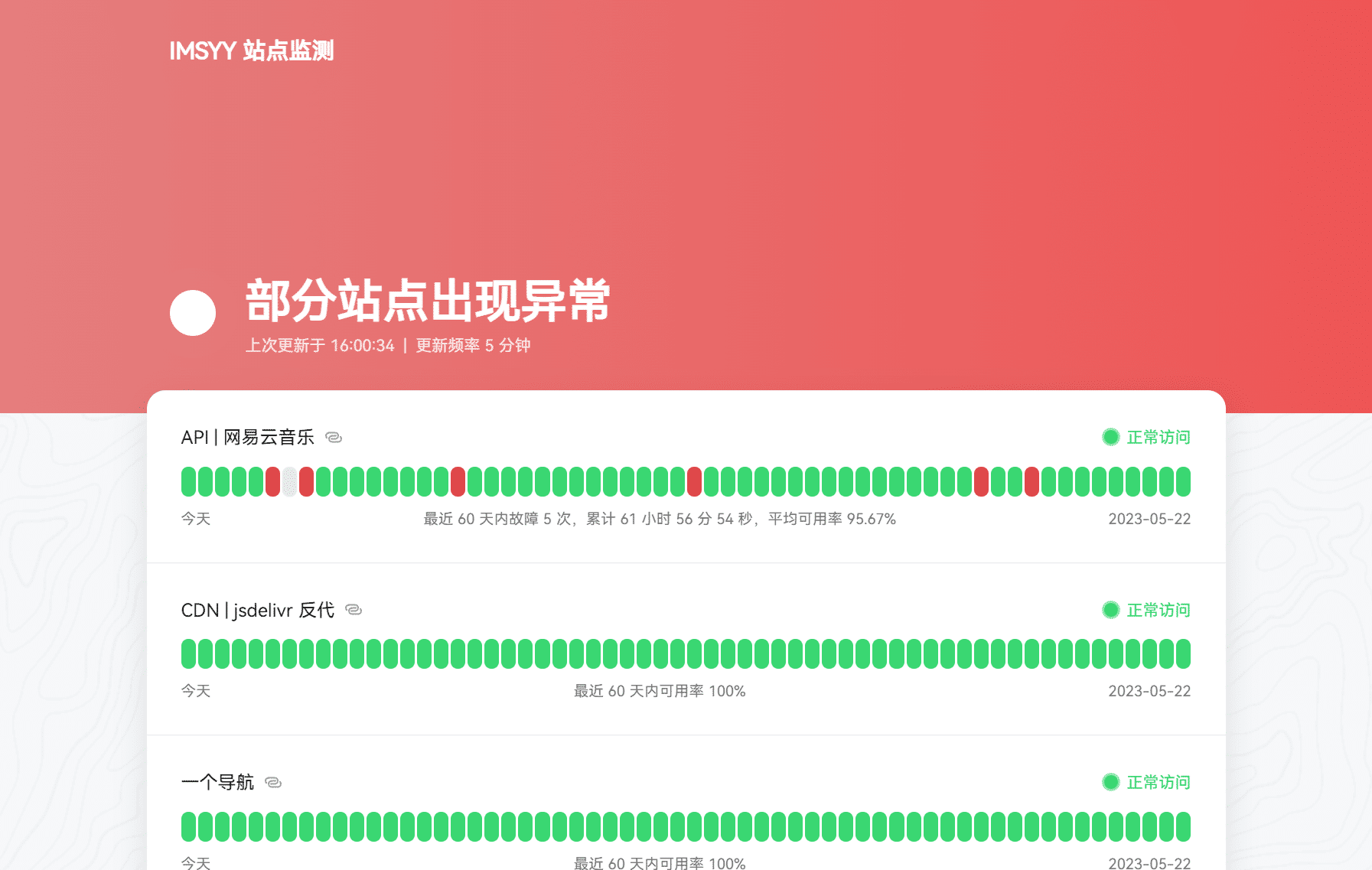 基于UptimeRobot API的在线状态面板,用于监测网站的在线状态。