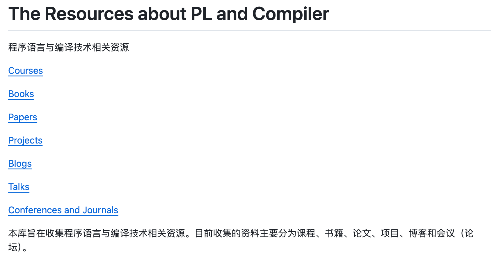 程序语言与编译技术相关资源,包含课程、书籍、论文、项目、博客和会议(论坛)。