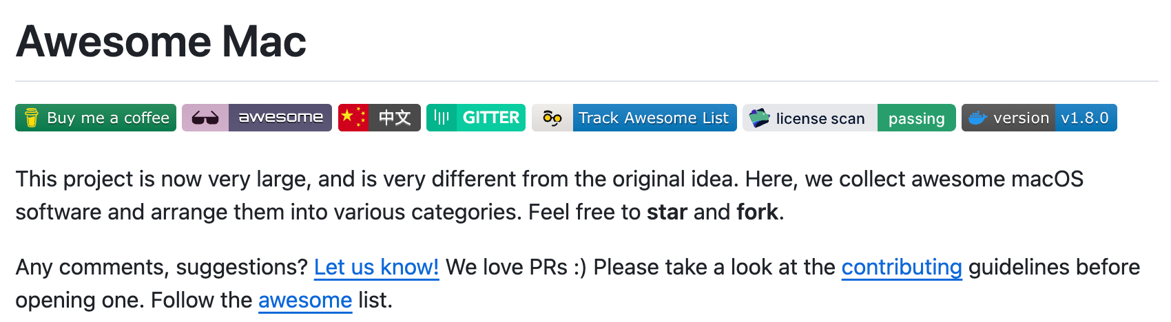 开源的macOS软件集合,旨在收集各种类别的优质macOS软件。项目包含大量软件推荐,涵盖阅读写作工具、开发工具、设计产品、通信工具、音频视频工具等多个领域。
