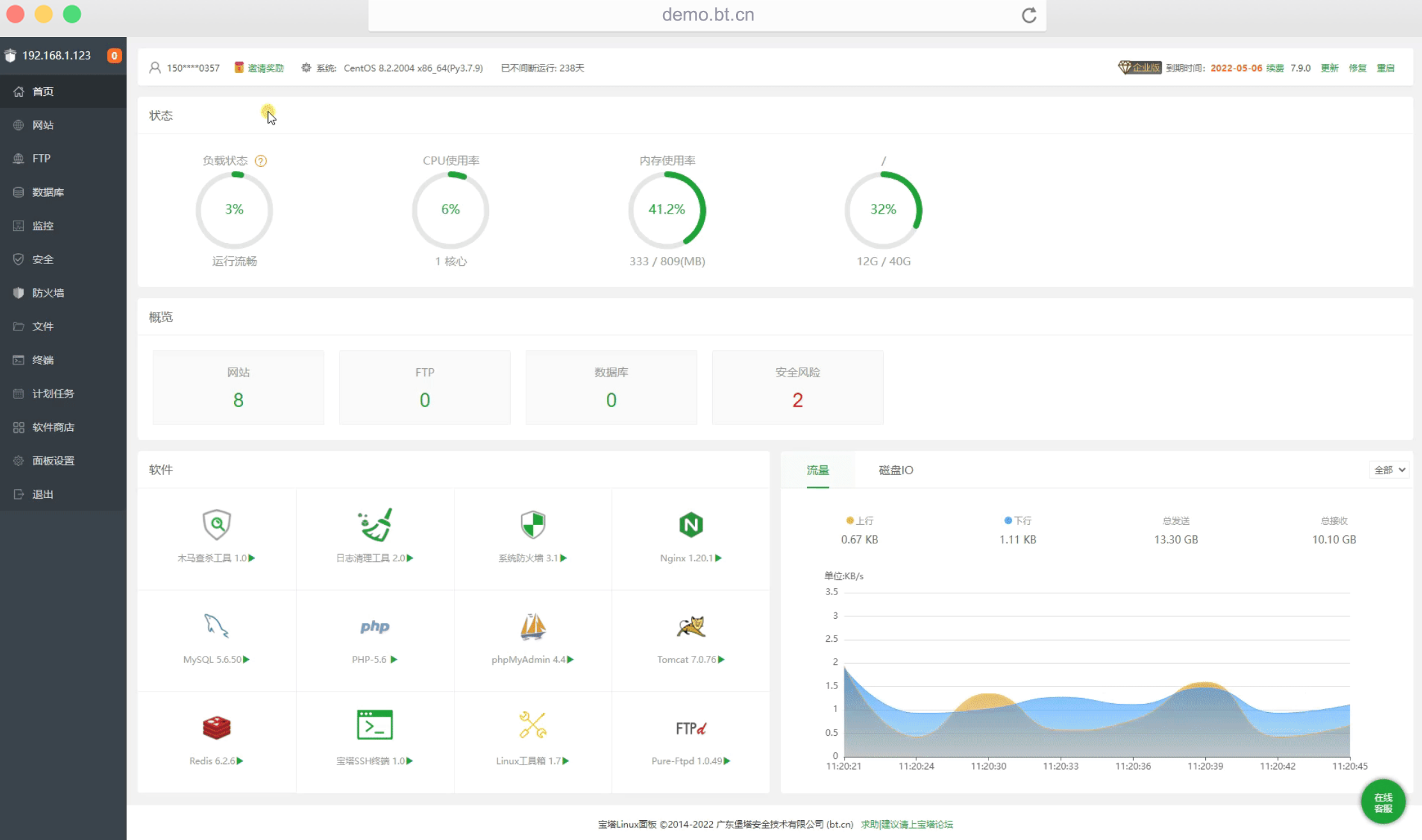一款服务器管理软件,支持windows和linux系统,可以通过Web端轻松管理服务器,提升运维效率。例如:创建管理网站、FTP、数据库,拥有可视化文件管理器,可视化软件管理器,可视化CPU、内存、流量监控图表,计划任务等功能。