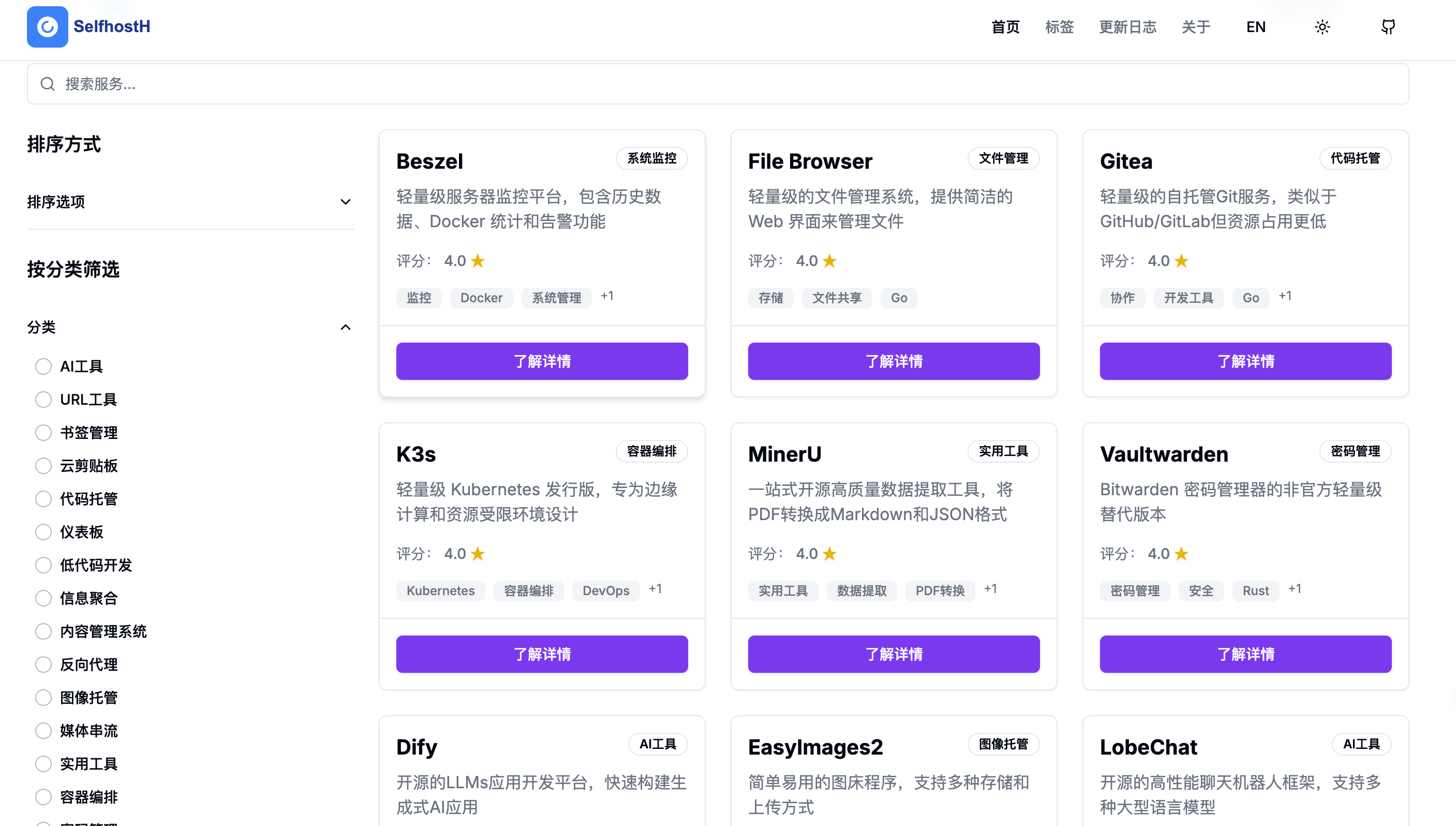 selfhost-hub收集和展示各种高质量自托管服务和工具。