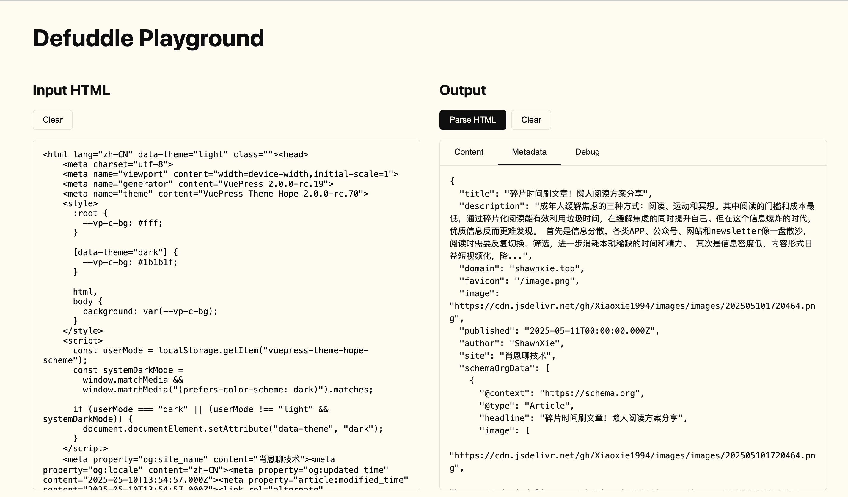 Defuddle是一款用于清理网页杂乱元素并提取主要内容的工具,旨在输出干净一致的HTML文档。
