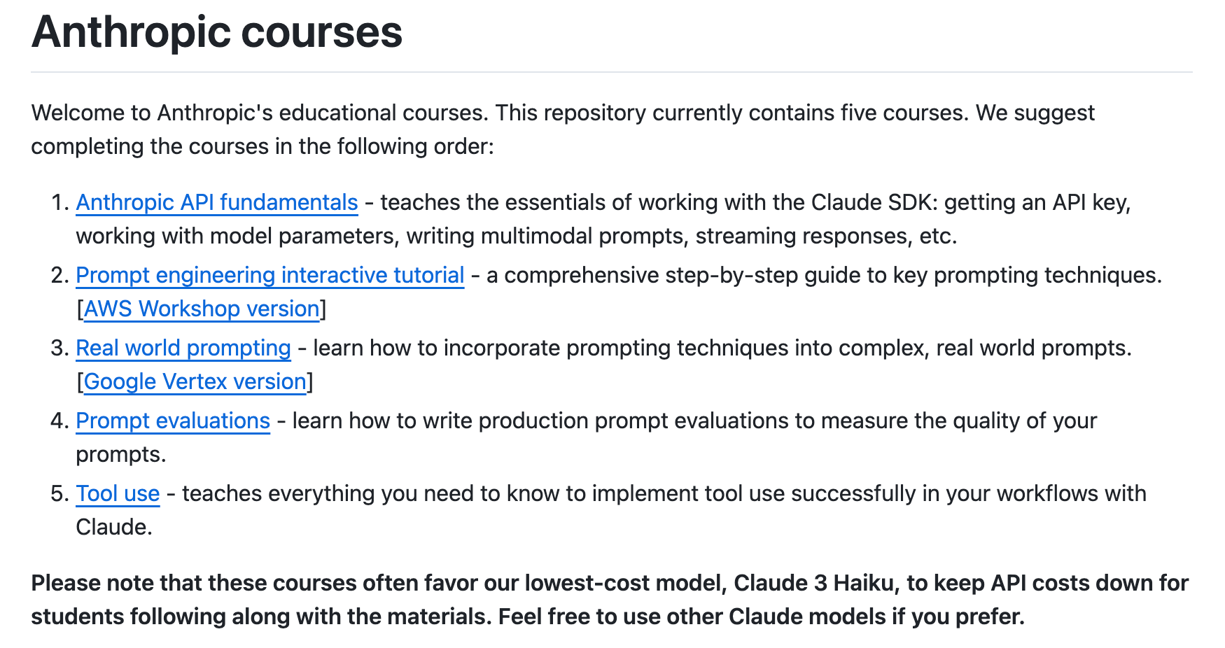 Anthropic公司提供的教育课程,主要面向希望学习如何使用Claude SDK和相关技术的用户。这些课程旨在帮助用户掌握从基础到高级的提示工程技术,并将其应用于实际场景。