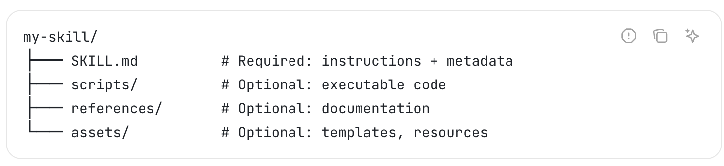 Agent Skills 是一种由 Anthropic 维护的简单开放格式,旨在为智能代理赋予新的能力与专业知识。它通过技能文件夹的形式存在,这些文件夹内包含指令、脚本以及资源,代理可发现并利用它们以更好地完成特定任务,实现一次编写、处处使用。