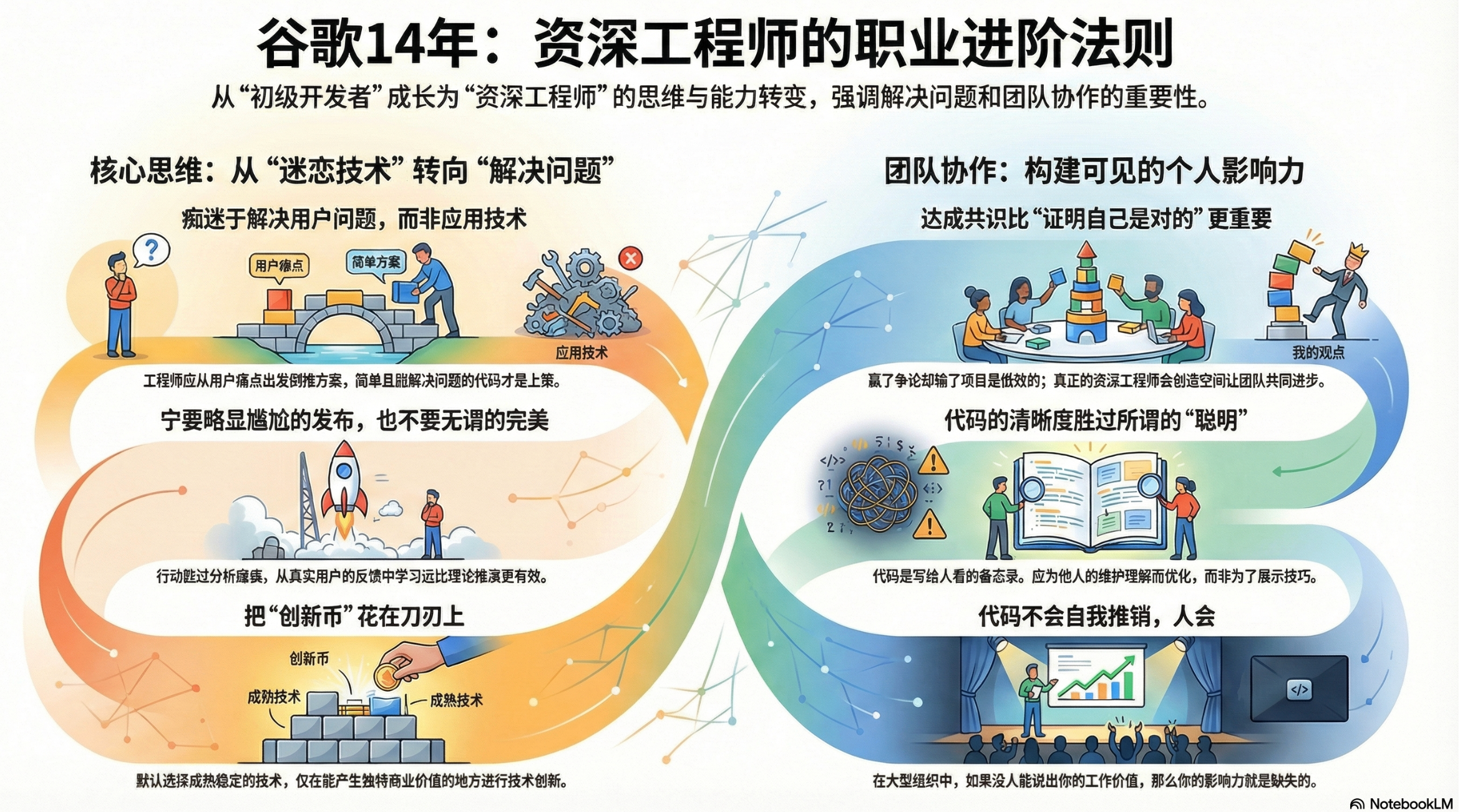 优秀的工程师应专注于解决用户问题,而非单纯追求技术的复杂性。在技术选型上,应谨慎对待新技术,避免因过度创新而增加系统的复杂性和维护成本。他还提到,代码的清晰性比巧妙性更重要,因为清晰的代码更易于后续维护和理解。在团队协作中,他指出,真正的挑战在于达成共识,而非单纯证明自己正确。