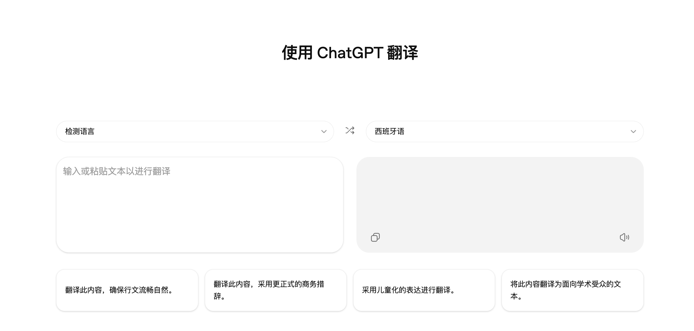 OpenAI推出的翻译功能,页面很像Google翻译。